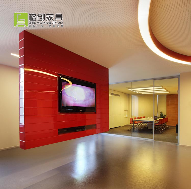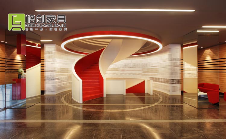 接下來我們看到的是一款辦公家具是京東的前臺,主紅白色調,是京東的主要顏色。360度波浪曲線設計,有別于傳統死板的前臺,這樣的設計更加潮氣蓬勃,而且無論客人從哪個方向來,都可以得心應手。