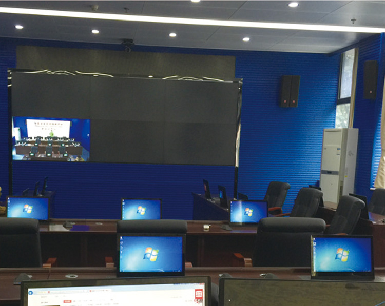 為了符合“智慧寶安”管控指揮系統的智能會議需求,格創智能結合辦公樓的建筑結構及相關設計標準進行設計,配置一套無紙化會議系統,選用高清液晶屏升降終端30套和多功能升降話筒30套,包含25臺高清液晶屏無紙化會議終端、1臺無紙化會議文件管理服務器、1個無紙化會議流媒體服務器、1臺無紙化會議投影服務器、1臺無紙化會議多媒體控制臺等設備,以液晶顯示終端為中心。