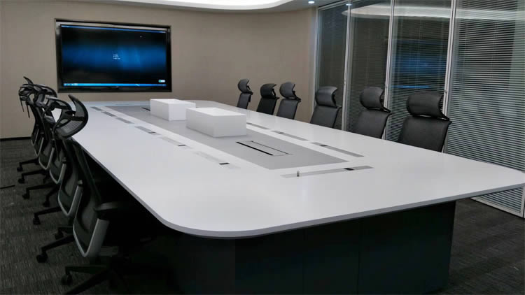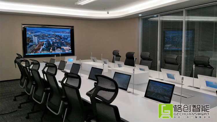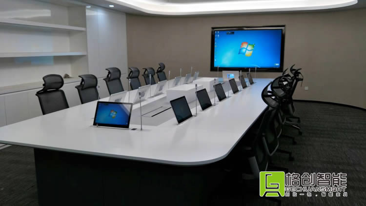 近些年,很多大型企業進行內部改革升級,大力開展信息化建設,提升內部管理水平,優化內部溝通協調流程,以節省企業成本,提升效率和效益。會議室的信息化改造,是浙江普利藥業有限公司內部溝通效率的首要任務。建立一系列高標準、技術先進,同時也是穩定、可靠的會議系統。在經過對市場眾多會議系統終端廠家的考察和對比,最終選用了格創智能無紙化會議系統(多媒體自動升降終端一體機),自動升降會議話筒,使得會議室整體風格會議室煥然一新,科技感十足。
