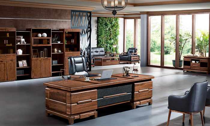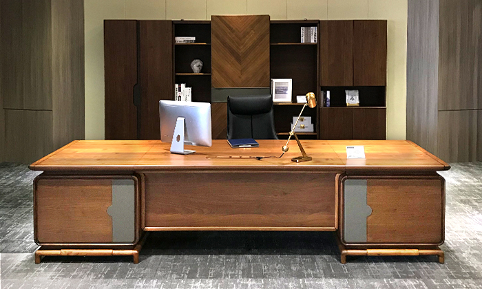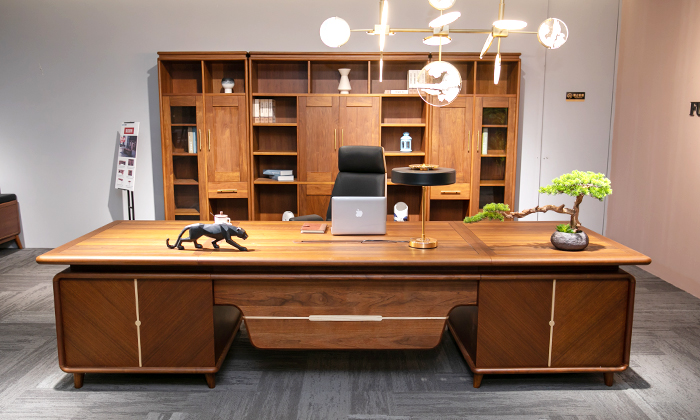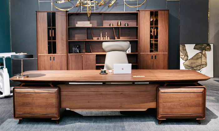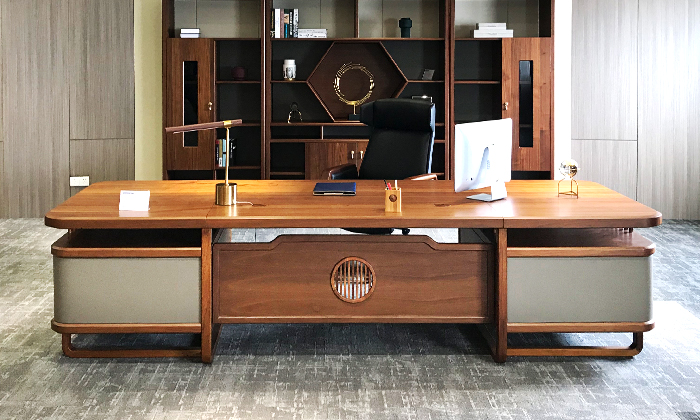 新中式北美胡桃木實木老板桌