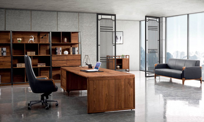 深圳辦公家具廠-新中式大氣胡桃木班臺