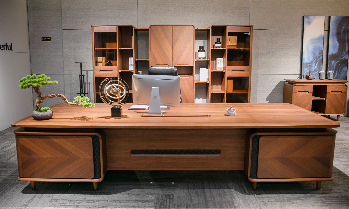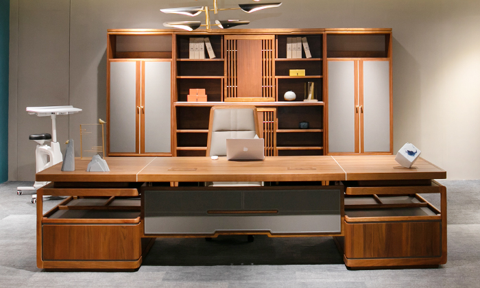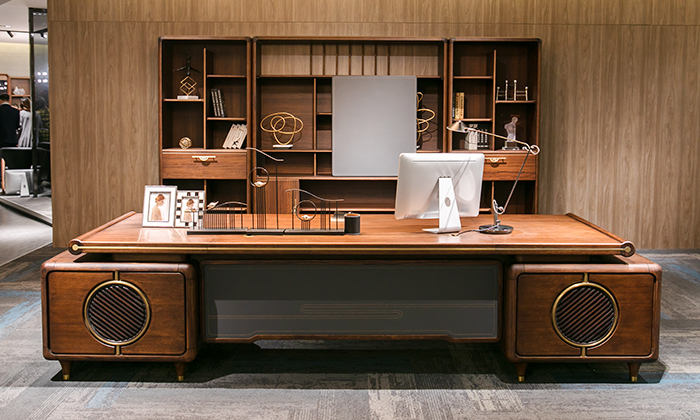 雅圖新中式實木+皮紋老板桌