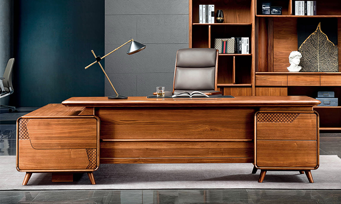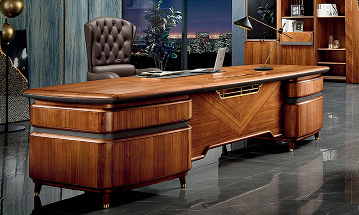 北美進口胡桃木+高級皮革老板桌