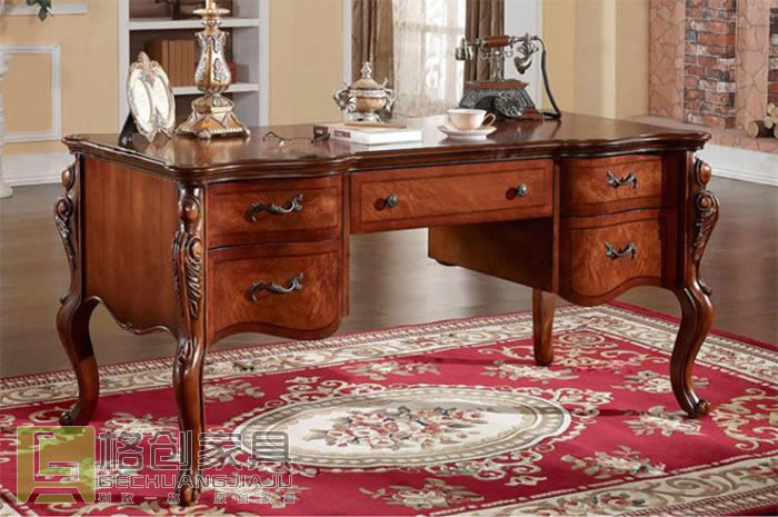 第三張實木辦公家具是一款設計極致奢華的辦公桌。該實木辦公家具中的辦公桌采用優雅的S型曲線桌角,再加上經典的原實木色調,使其設計十分沉穩大氣。這款辦公桌采用整個設計十分霸氣,利用精美的雕花和經典的造型為大家展現奢華的美式風格。該張實木辦公家具中的辦公桌采用多抽屜設計,使其具有超強的收納功能,增加實用性。該款辦公桌實木辦公家具價格建議咨詢客服。