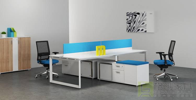 然后為大家推薦一款能夠展現現代時尚、溫馨等特點的屏風卡位辦公桌。該款屏風卡位辦公桌采用優質金屬做支架,能夠擁有較強承重力和穩定性,使其家具不易變形,從而擁有較長使用年限,贏得眾多人士的喜愛。該款屏風卡位辦公桌也是采用四人位設計,中間使用中高度擋板做隔斷,既能夠保證每個員工擁有一點自己私人小空間,又能夠幫助員工之間的工作交流。