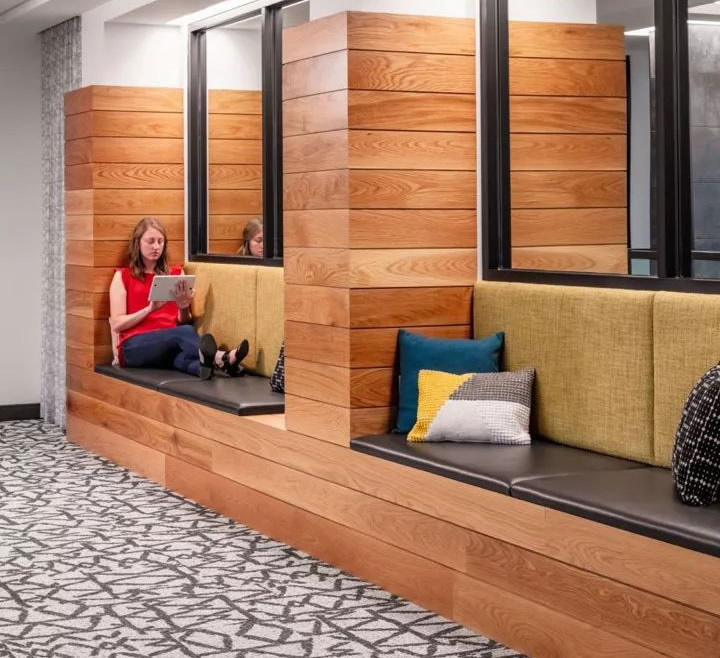 在這里員工可以自由選擇自己喜愛的工作環境,從埋頭專注工作到小組會議到大型團隊協作,應有盡有。靈活多變、強烈的社群意識與和睦共處,BCG的新辦公室設計很好的詮釋了公司的文化精神。