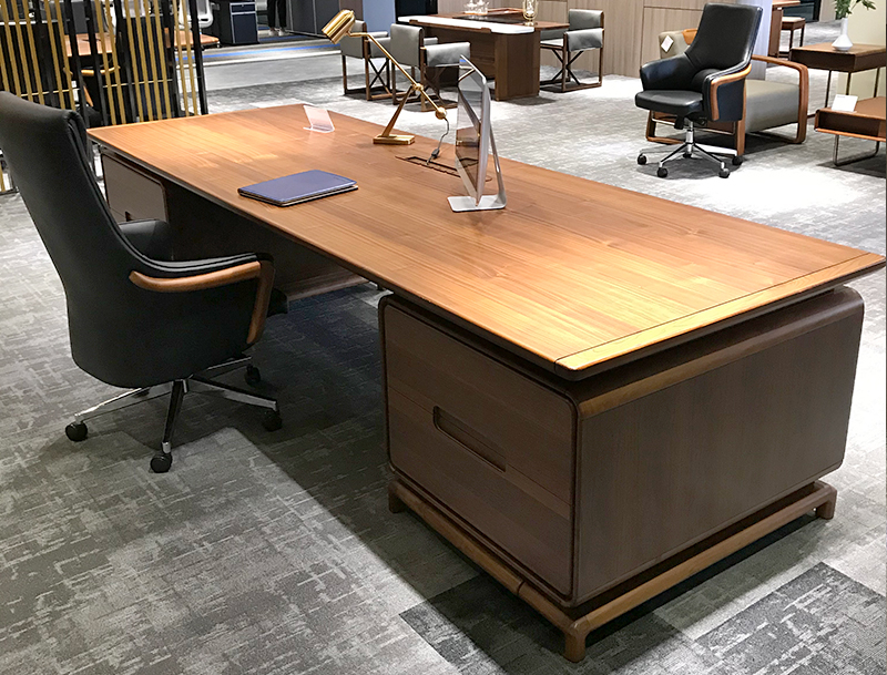 深圳市格創家具有限公司推出的這款班臺,圓潤流暢的弧度走線精致,沉穩低調中更添一絲貴氣。清晰自然的木質紋理與寬厚大氣的造型流露出濃濃書卷氣,樸拙仍矜貴,彰顯使用者穩重內斂的品質,給人以值得托付的信賴感。整體造型沉靜不跳脫,增添些許禪意,彰顯不凡氣度。