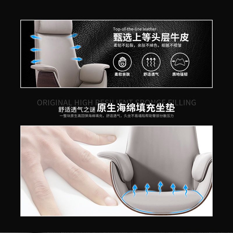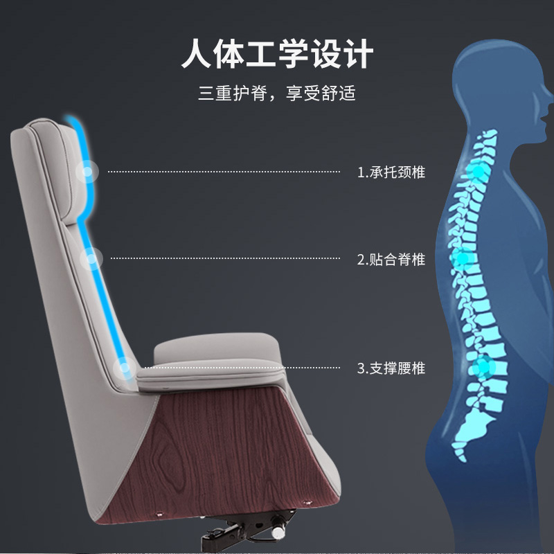 從使用者的視點動身,皮質大班椅比工作桌、文件柜等其他辦公家具對人的健康更重要。一天工作八小時,有的人有七個小時坐在工作椅上。